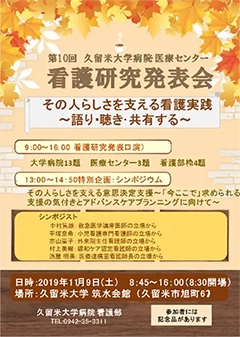 久留米大学病院看護部では、「看護研究の成果を共有し、看護の質の向上を目指す」ことを目的に毎年、医療センターと合同で院内看護研究発表会を開催しています。